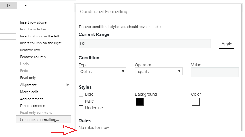 - conditional formatting