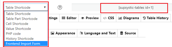 - Open the table which you need and copy the shortcode.