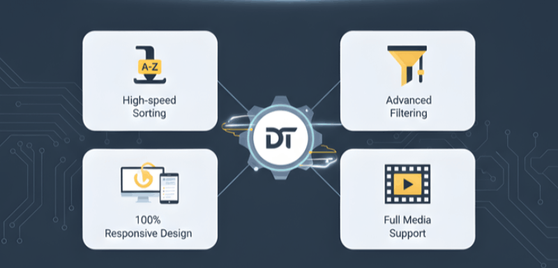 Data Tables Generator is designed to efficiently manage complex data types. It offers the following features:- Responsive tables